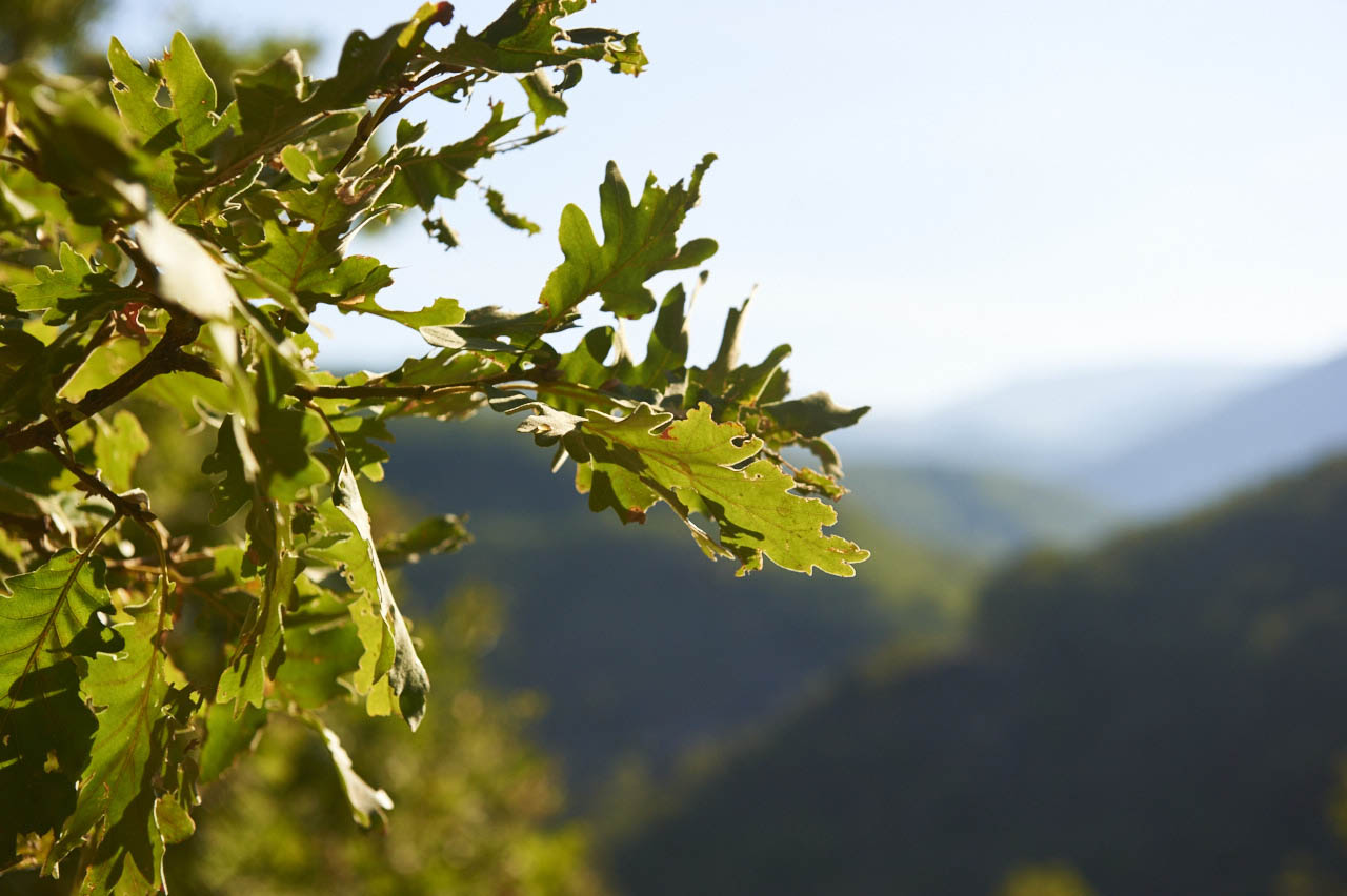 En los bosques caducifolios encontramos grandes ejemplares de roble, espinos, madroños y castaños. En el sotobosque de robles abundan especies de helechos, orquídeas, pajaritos y aguileña. En laderas más soleadas se enclavan grandes extensiones de cultivo del cerezo, lo que propicia un excelente fruto, la cereza picota.